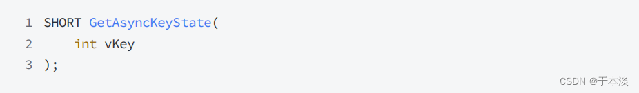 }获取按键情况,GetAsyncKeyState的函数原型如下: