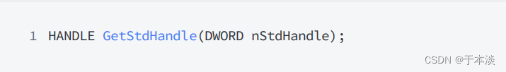 GetStdHandle是⼀个Windows API函数。它⽤于从⼀个特定的标准设备(标准输⼊、标准输出或标准错误)中取得⼀个句柄(⽤来标识不同设备的数值),使⽤这个句柄可以操作设备。