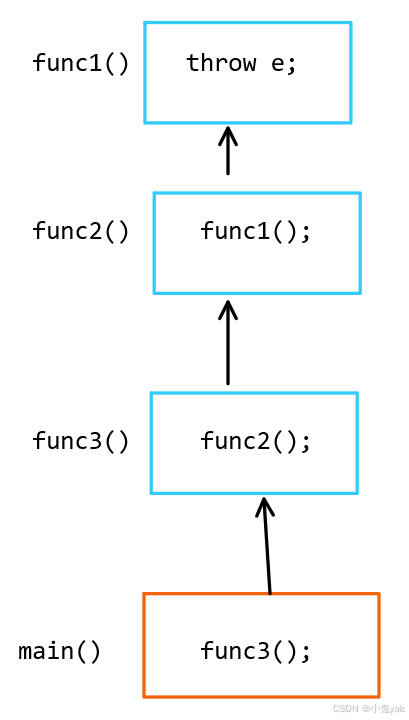 有时catch到一个异常对象 后,需要对错误进行分类,其中的某种异常错误 需要进行特殊处理,其他异常则重新抛出给外层调用链处理。捕获异常后重新抛出,直接throw,就可以把捕获的对象重新抛出。