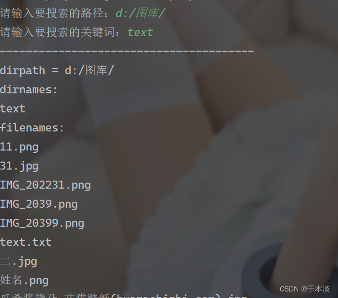 print(f"{dirpath}/{f}")查到到我们的路径和文件进行输出。
