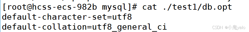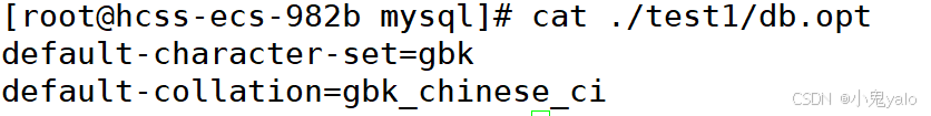 在我们创建一个数据库后,在linux下,就是在var/lib/mysql路径下创建一个目录,在该目录下,有一个文件db.opt,该文件有该数据库采用的字符集和校验规则。
