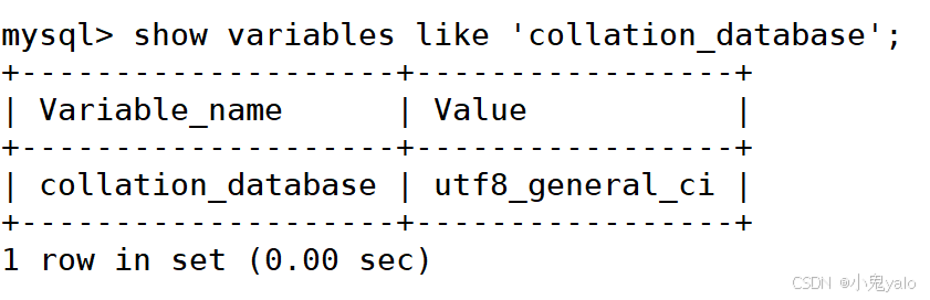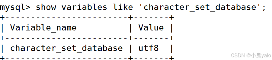 show variables like 'character_set_database'; show variables like 'collation_database';