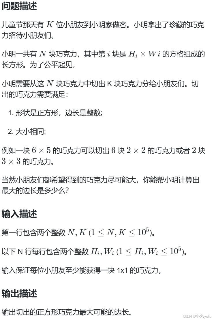 }题目链接:8.分巧克力 - 蓝桥云课