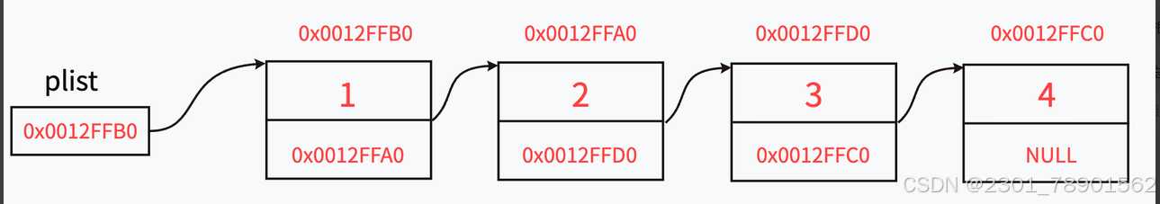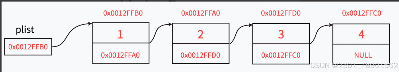图中指针变量 plist保存的是第⼀个结点的地址,我们称plist此时“指向”第⼀个结点(头节点),头节点很重要不管后续我们对链表进行什么操作我们都要记住头节点的位置,只有我们知道头节点才可以通过其中的指针变量才可以对后面的节点进行操作,所以我们要记住头节点位置。