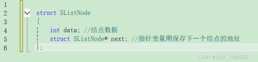 链表由节点组成,而每个节点由要保存的数据和保存下⼀个结点的地址组成,要满足这一结构,我们可以使用结构体。