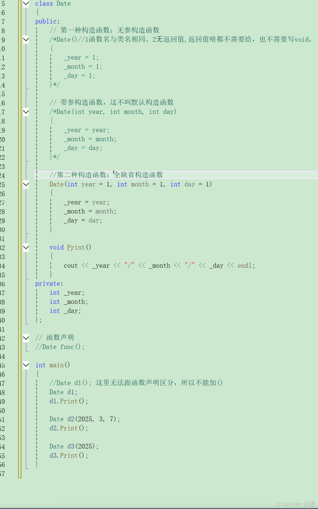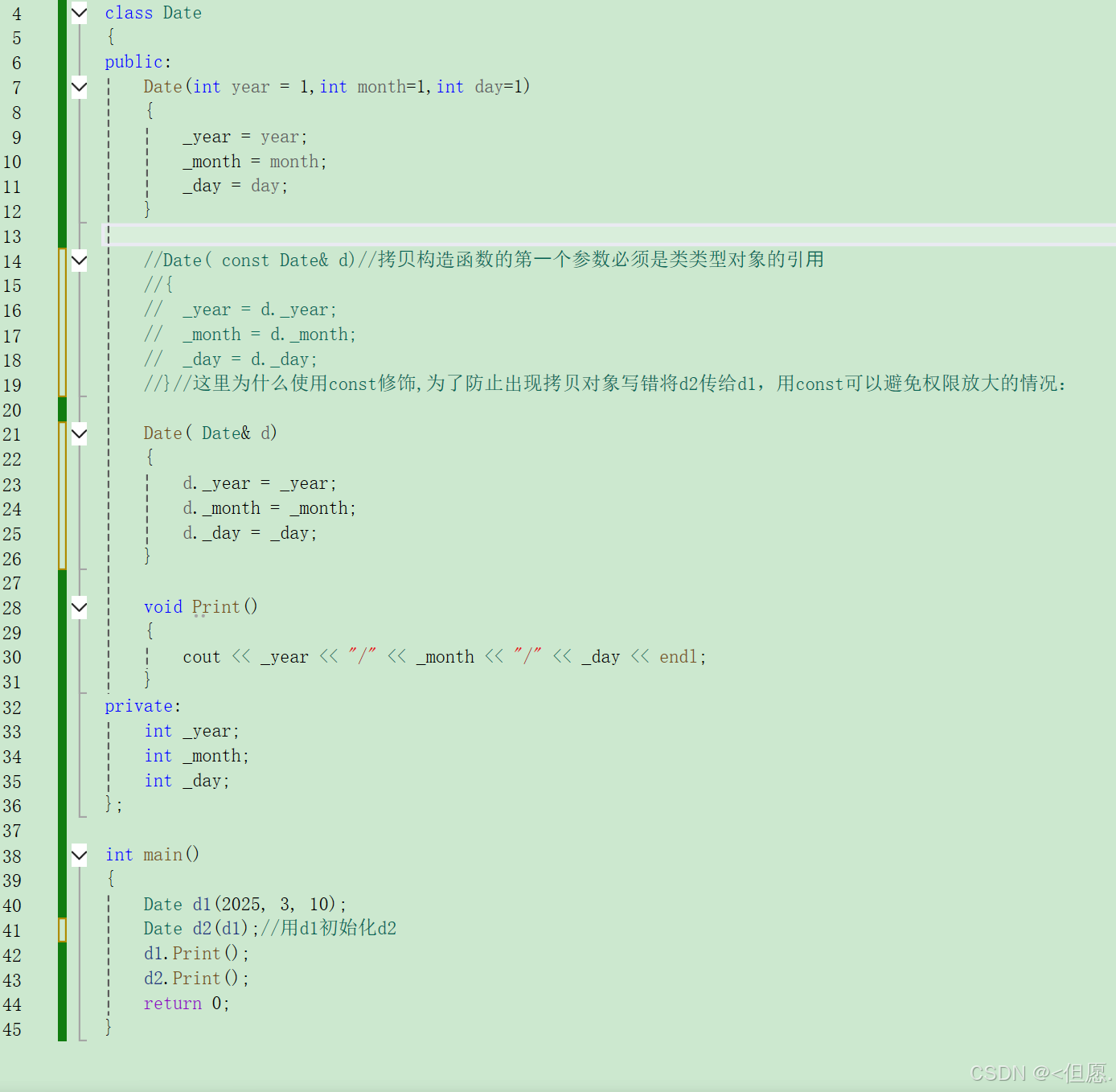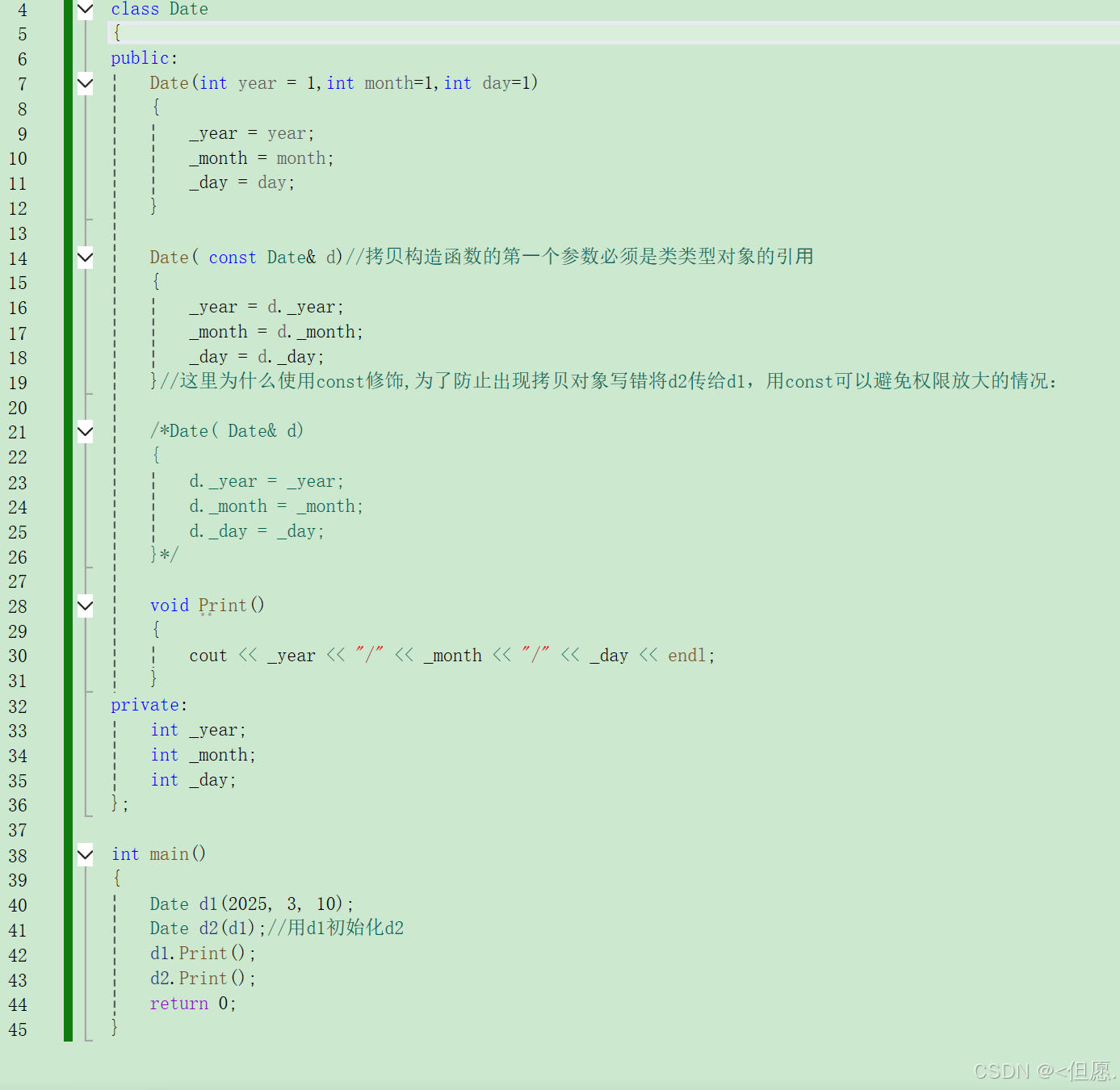 //Print原型: void Print(const Date* const this) void Print() const { cout << _year << "-" << _month << "-" << _day << endl; }