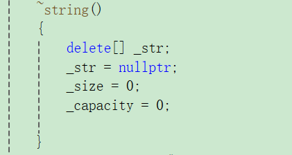 (2)如果大于,就先开辟(n+1)个内存空间[多出来的一个用于储存'\0',然后将原有数据拷贝到新空间(strcpy函数会将'\0'拷贝过去)。然后释放旧空间,并让_str指向新空间,同时更新相应的_capacity;