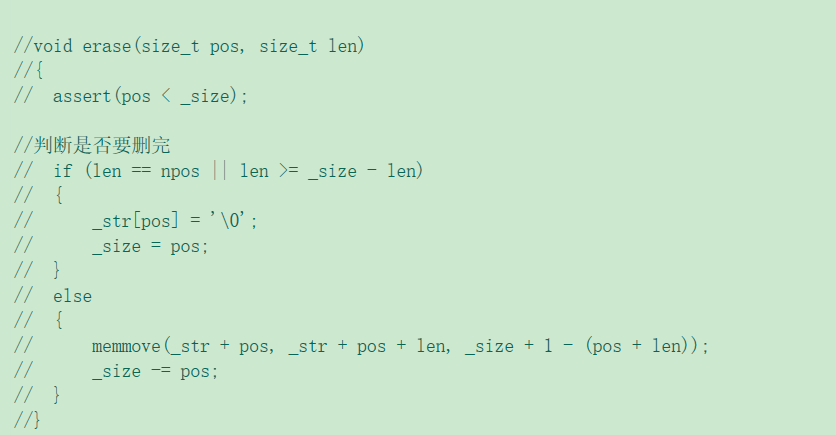 (1)从pos(指定位置)开始起,要删除的数据个数超过pos位置到string对象最后一个数据的个数,即将pos位置后所以数据全部删完。(直接将pos处数据设置为'\0‘即可)