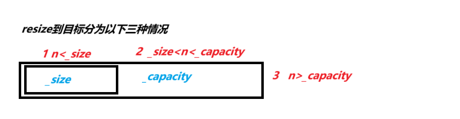 (2)其他情况,我们和在一起处理。直接复用reserve()函数,将_capacity扩到n,在将[_size,n)的数据进行初始化,如果参数指定了用什么字符初始化就用什么字符初始化,默认使用'\0‘初始化。