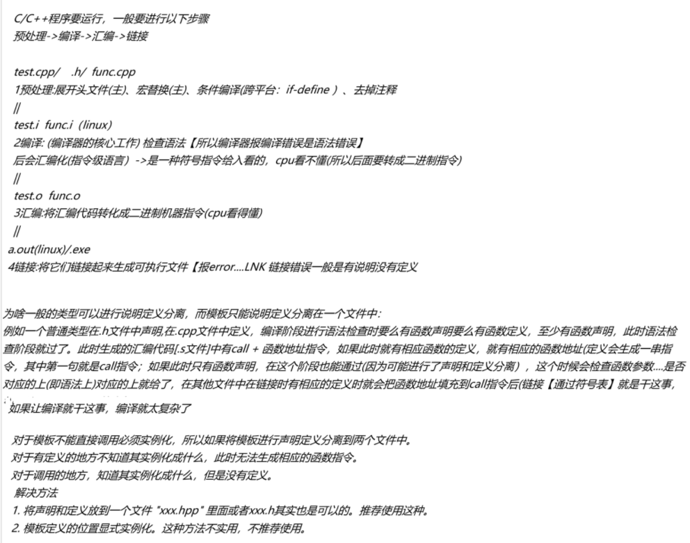 1. 将声明和定义放到一个文件 "xxx.hpp" 里面或者xxx.h其实也是可以的。推荐使用这种。
