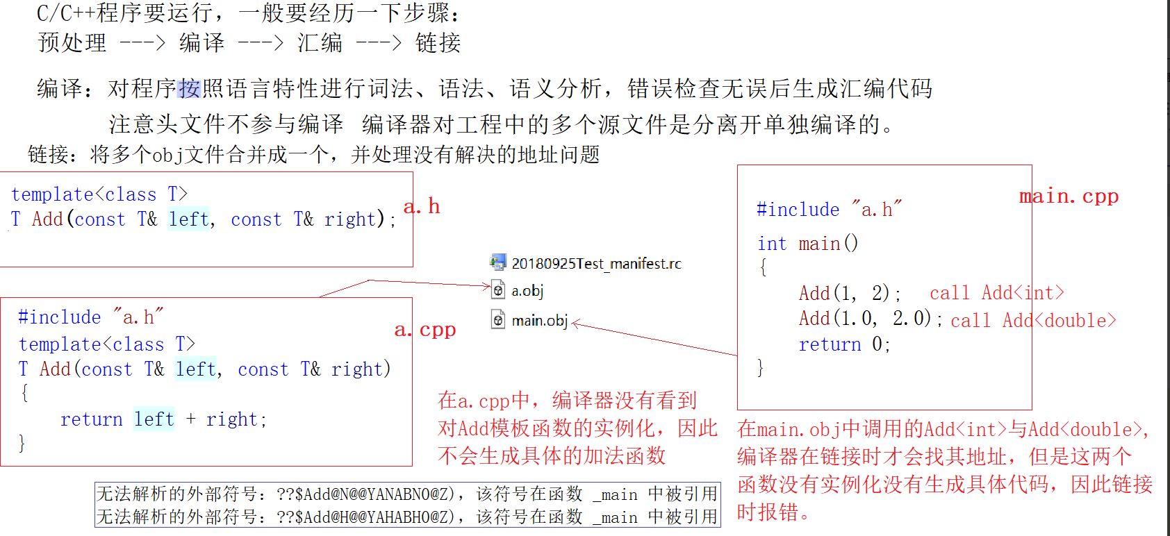 2. 模板定义的位置显式实例化。这种方法不实用,不推荐使用。
