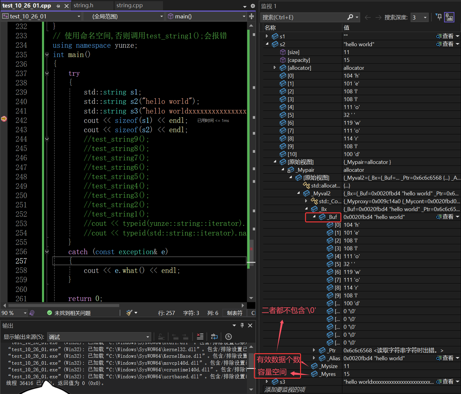 当对象比较大的时候就会再用另外一个数组_Ptr,而不会两个数组各存一部分,若各存一部分像用c_str都无法返回给值,这样就浪费了一个数组的空间了