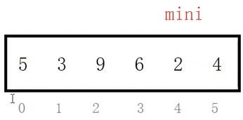 如图,对该数组循环一遍,找最小的值(2),将其放在下标为0的位置