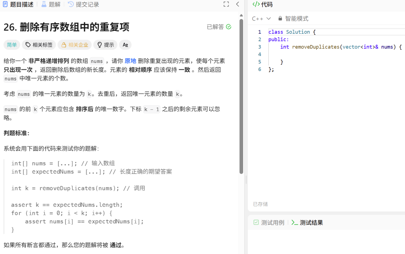 通过这样的步骤,双指针法在原地完成了重复元素的删除,同时保证了时间复杂度为O(n)、空间复杂度为 O(1),是该问题的最优解法。