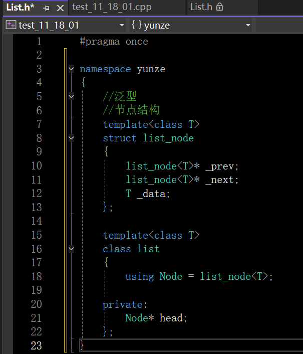 yunze::list<int>::iterator it = lt.begin();这句代码的意思是:定义一个名为 it 的变量,它的类型是 yunze::list< int >::iterator(即 list_iterator< int >),并用 lt.begin() 返回的那个迭代器对象来初始化它。