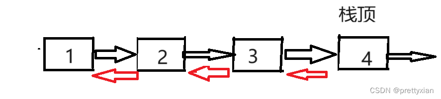 用单链表实现栈有一个问题,单链表不能回头,如图这么设计,在压栈之后,不方便出栈。