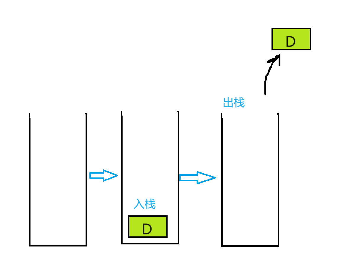 注意:入栈顺序是DCBA,出栈顺序不一定是ABCD,可以边入边出