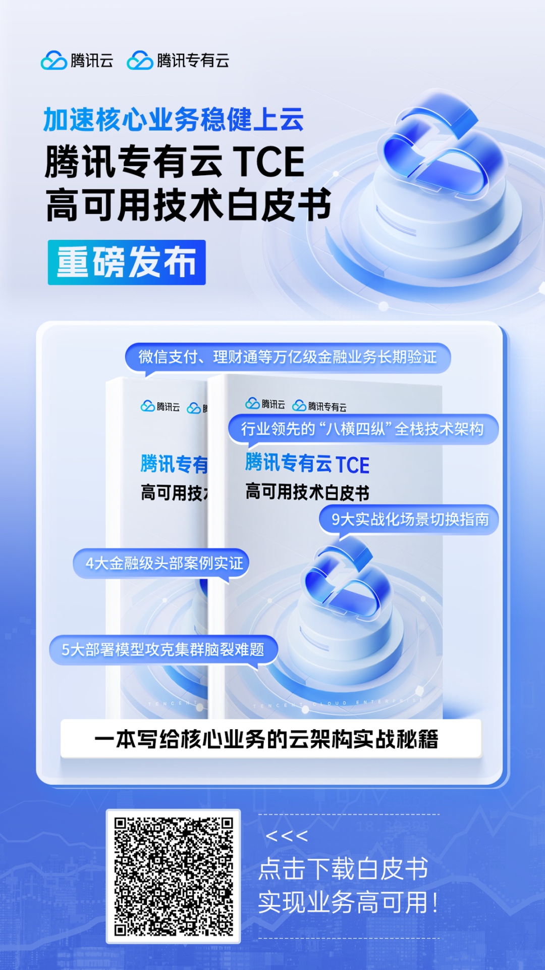 该白皮书系统阐述了腾讯专有云TCE如何通过创新的架构设计与部署模式,为金融、政务、制造等对业务连续性要求极高的行业,提供构建高可靠云基座的实践指南。