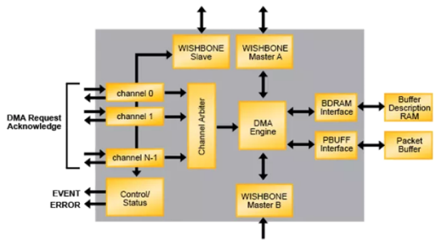 DMA使用channel(通道)来实现并行。每个通道互相独立,有自己的寄存器组,请求/响应逻辑、中断信号通路,可独立服务一个外设或一个外设的某类传输任务。另外,还可通过时间分片和上下文快速切换,实现虚拟通道技术,实现通道的更高效复用。