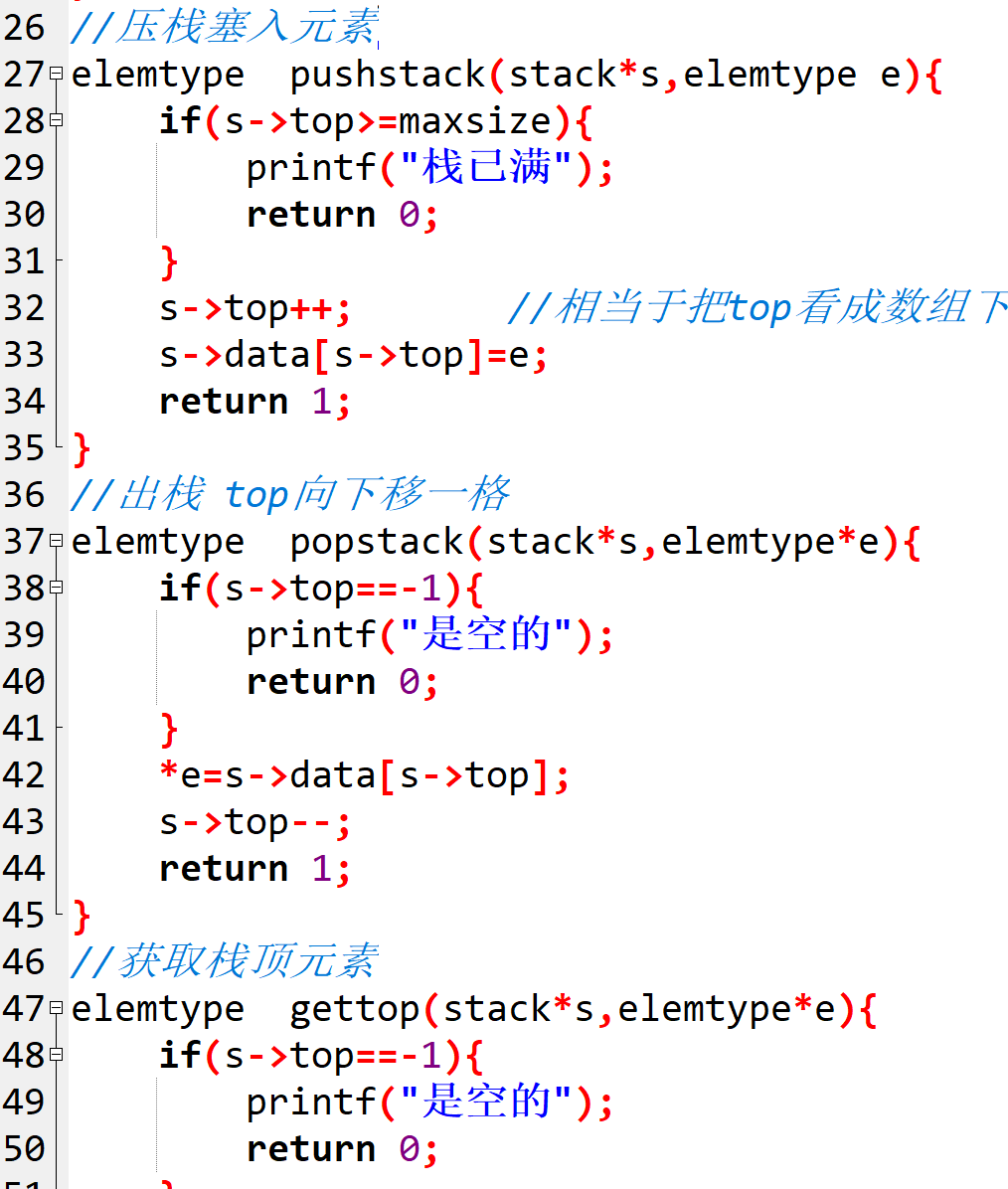 #define maxsize 100 // 定义栈的最大容量