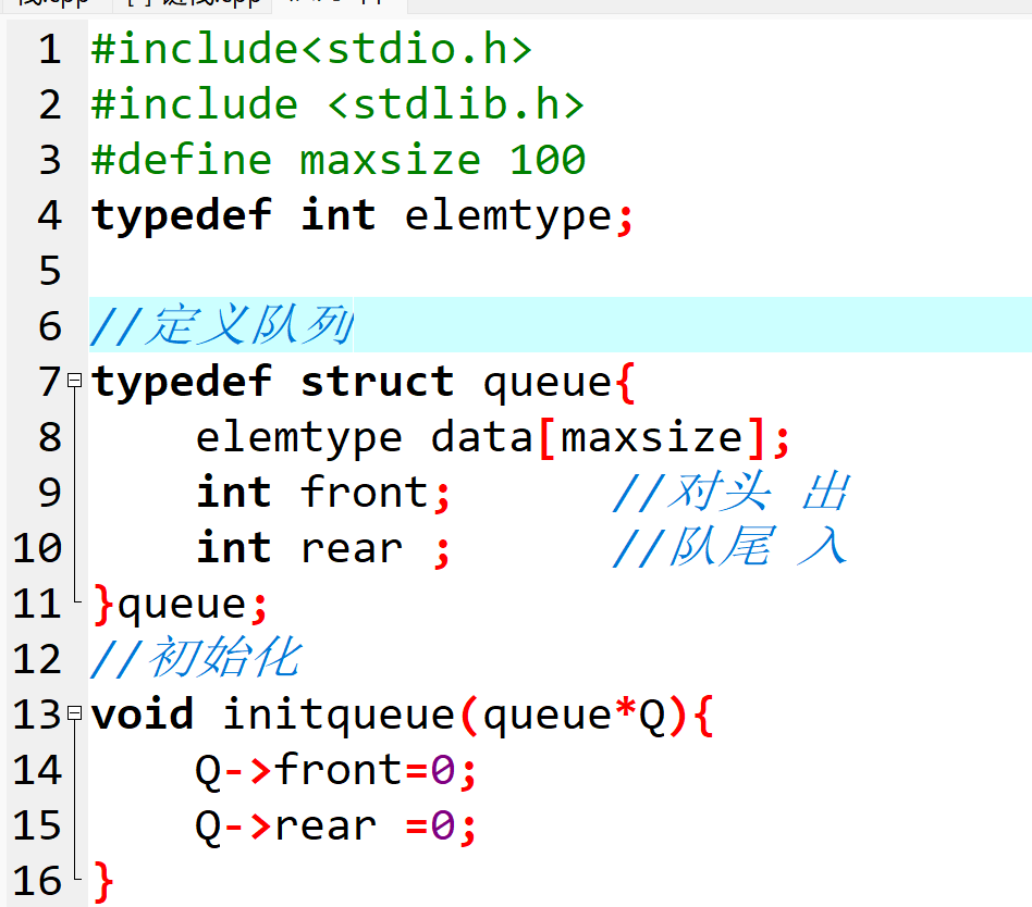 Q->rear=Q->rear-tem; // 队尾更新为实际元素个数