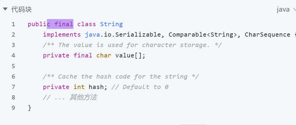 从源码可以看出,String类被final修饰,意味着它不能被继承;同时,存储字符串数据的value数组也是final修饰的,这保证了value数组的引用地址无法被修改。虽然value数组本身是可以修改的(比如通过反射),但Java官方并未提供这样的接口,因此从开发者的角度来看,String对象就是不可变的。