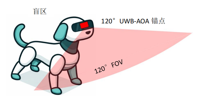 在机身不同方位安装多个120°FOV的UWB-AOA锚点,以扩大FOV覆盖范围。但成本和功耗显著提高,模块间协同处理复杂,且仍可能存在盲区。