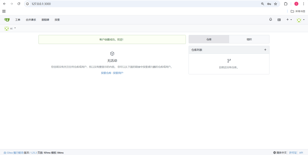 7. 创建完成之后,您就可以通过该账号密码登录到Gitea管理平台了。