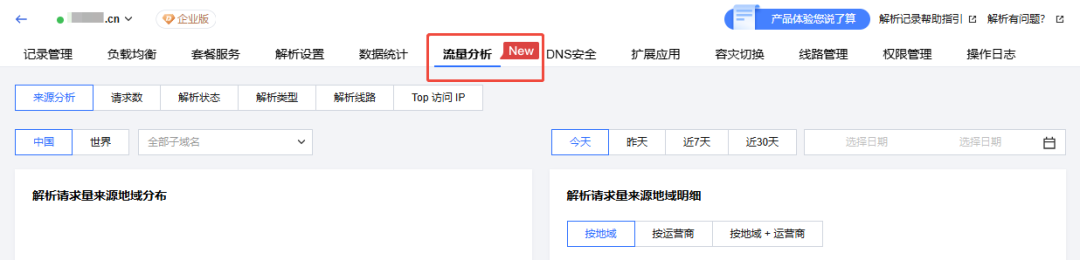 目前,「DNS流量分析」功能现已对云解析企业版和尊享版用户开放,赶快来登录使用,高效掌控您的域名流量状态吧~