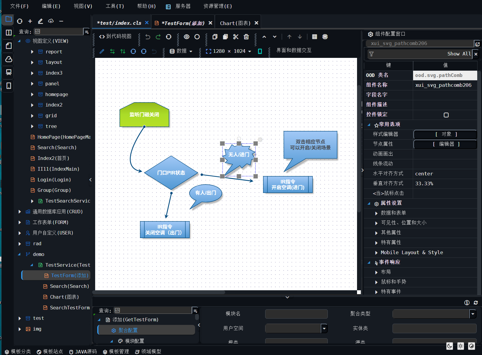 AI生成的代码会自动封装“决策节点的多分支连接”“悬停动画”等逻辑,无需手动编写事件绑定——Ooder-UI的语义化API(如setFromPoint("right"))让AI能精准理解“从节点右侧连接”的业务意图。