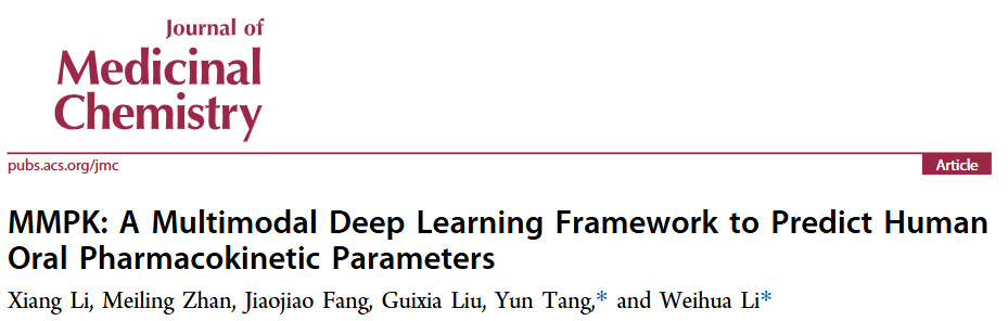 Li, Xiang, Meiling Zhan, Jiaojiao Fang, Guixia Liu, Yun Tang, and Weihua Li. "MMPK: A Multimodal Deep Learning Framework to Predict Human Oral Pharmacokinetic Parameters." Journal of Medicinal Chemistry (2025).