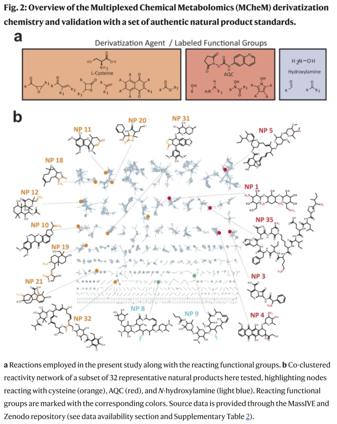 为处理多反应数据,研究人员开发了 mzmine 的“在线反应性”模块,结合离子身份网络和用户定义的质量差,将前体与衍生产物关联,输出包含质谱信息和反应性信息的混合数据集,并生成可供 CSI:FingerID、GNPS2 等工具利用的官能团或子结构信息。