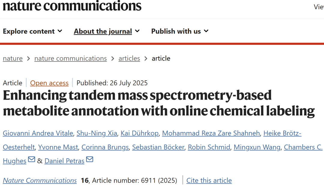 Vitale, G.A., Xia, SN., Dührkop, K. et al. Enhancing tandem mass spectrometry-based metabolite annotation with online chemical labeling. Nat Commun 16, 6911 (2025).