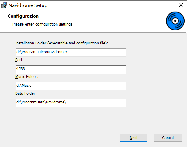 2、双击安装程序,按照向导完成安装。您可以自定义安装路径和数据存储位置。安装过程中,请确保选择正确的音乐文件夹路径,以便Navidrome能够扫描您的音乐文件。