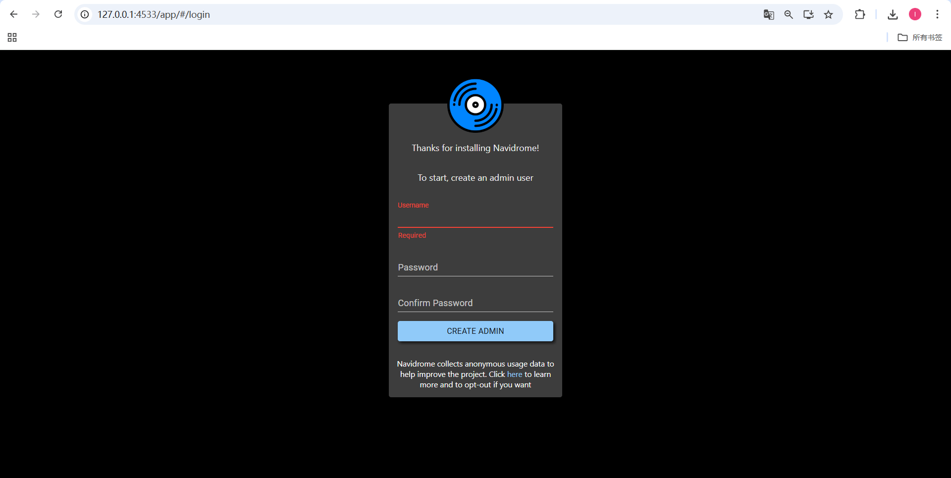 3、安装完成后,服务将自动安装并启动。您可以在浏览器中访问[http://****:4533](或您选择的任何端口)并设置第一个用户。