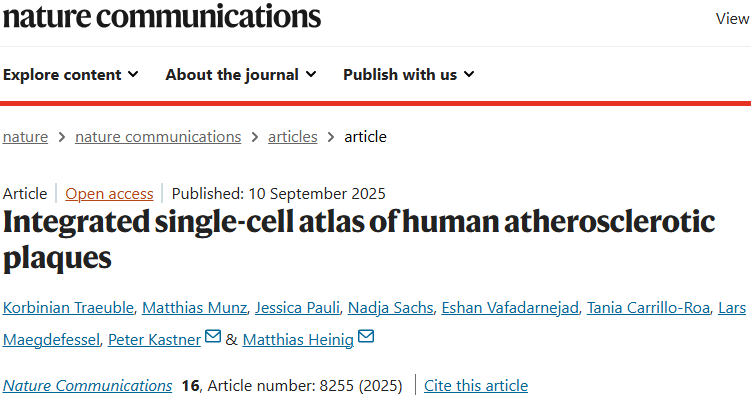 Traeuble, K., Munz, M., Pauli, J. et al. Integrated single-cell atlas of human atherosclerotic plaques. Nat Commun 16, 8255 (2025).