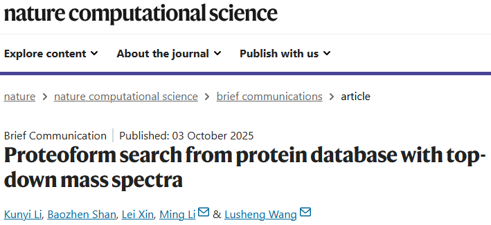 Li, K., Shan, B., Xin, L. et al. Proteoform search from protein database with top-down mass spectra. Nat Comput Sci (2025).