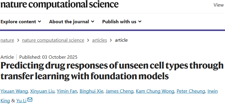 Wang, Y., Liu, X., Fan, Y. et al. Predicting drug responses of unseen cell types through transfer learning with foundation models. Nat Comput Sci (2025).