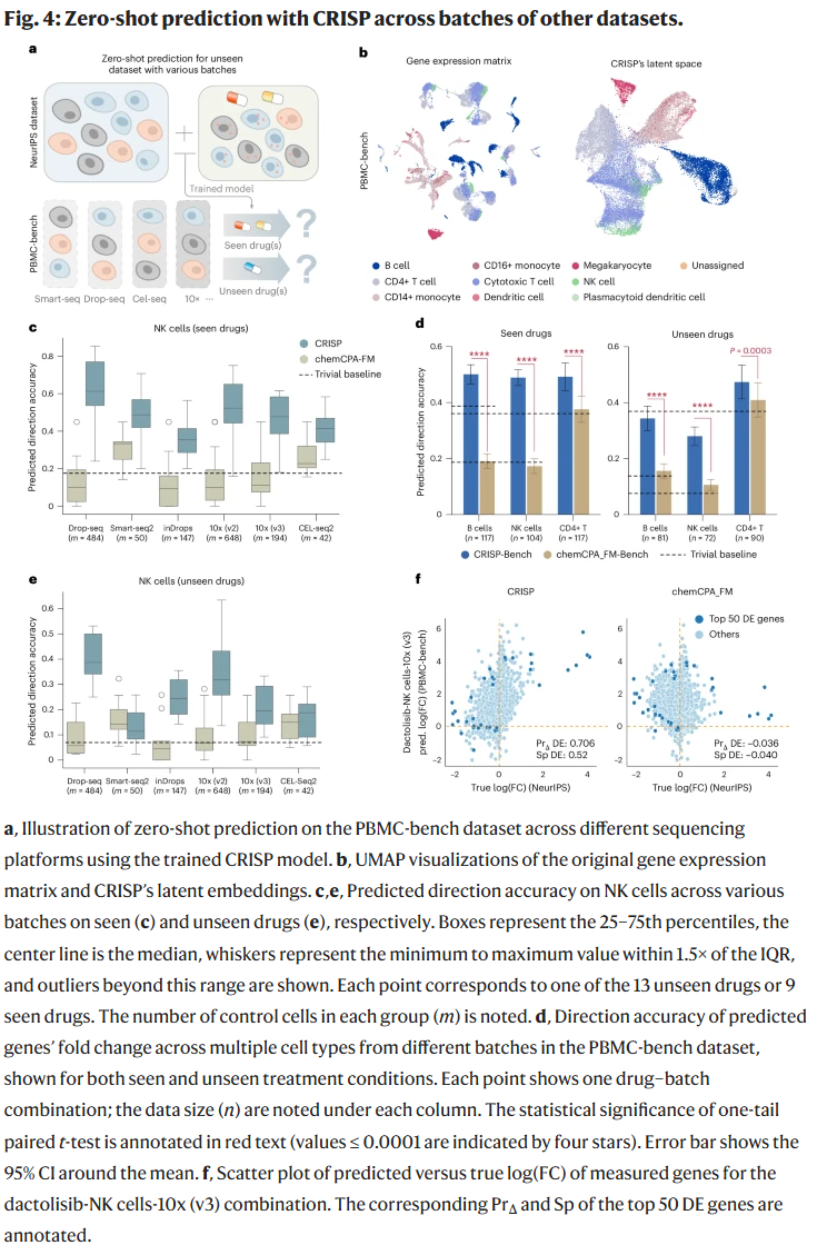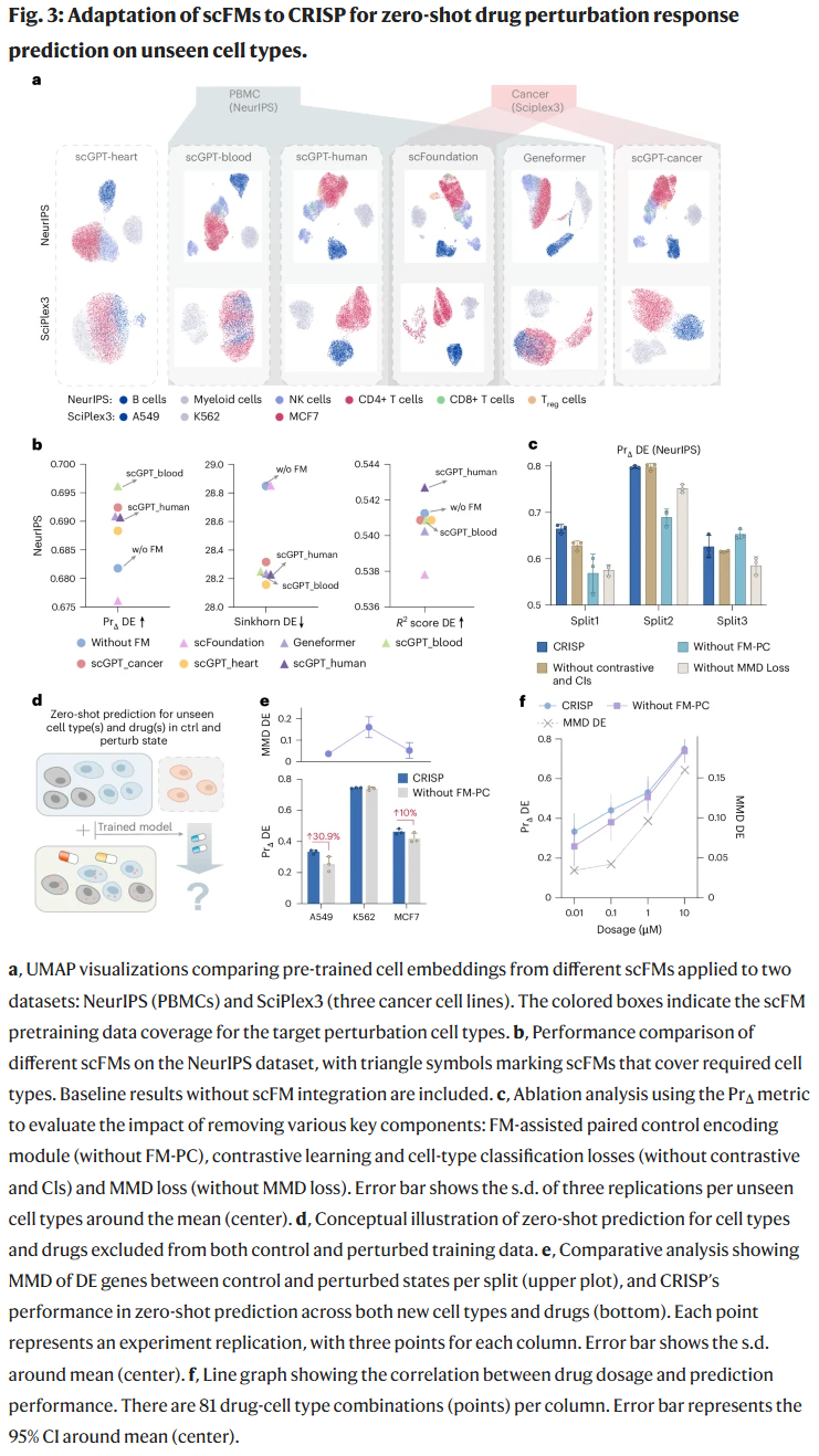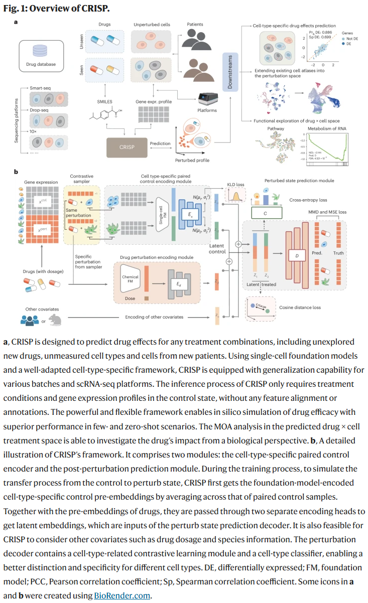 总体而言,CRISP为预测未见细胞类型的药物反应提供了一种灵活而强大的解决方案,既可推动药物再定位研究,也为未来个性化医疗提供了有前景的技术路线。