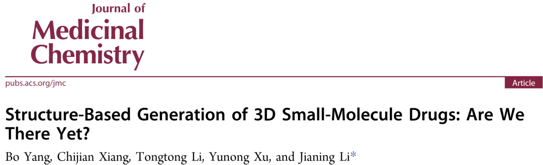 Structure-Based Generation of 3D Small-Molecule Drugs: Are We There Yet? Bo Yang, Chijian Xiang, Tongtong Li, Yunong Xu, and Jianing Li, Journal of Medicinal Chemistry Article.