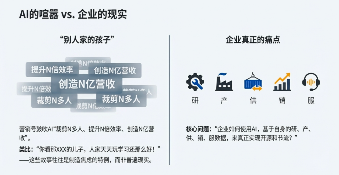 “企业如何使用AI,基于自身研、产、供、销、服五类的数据,来开源和节流?”