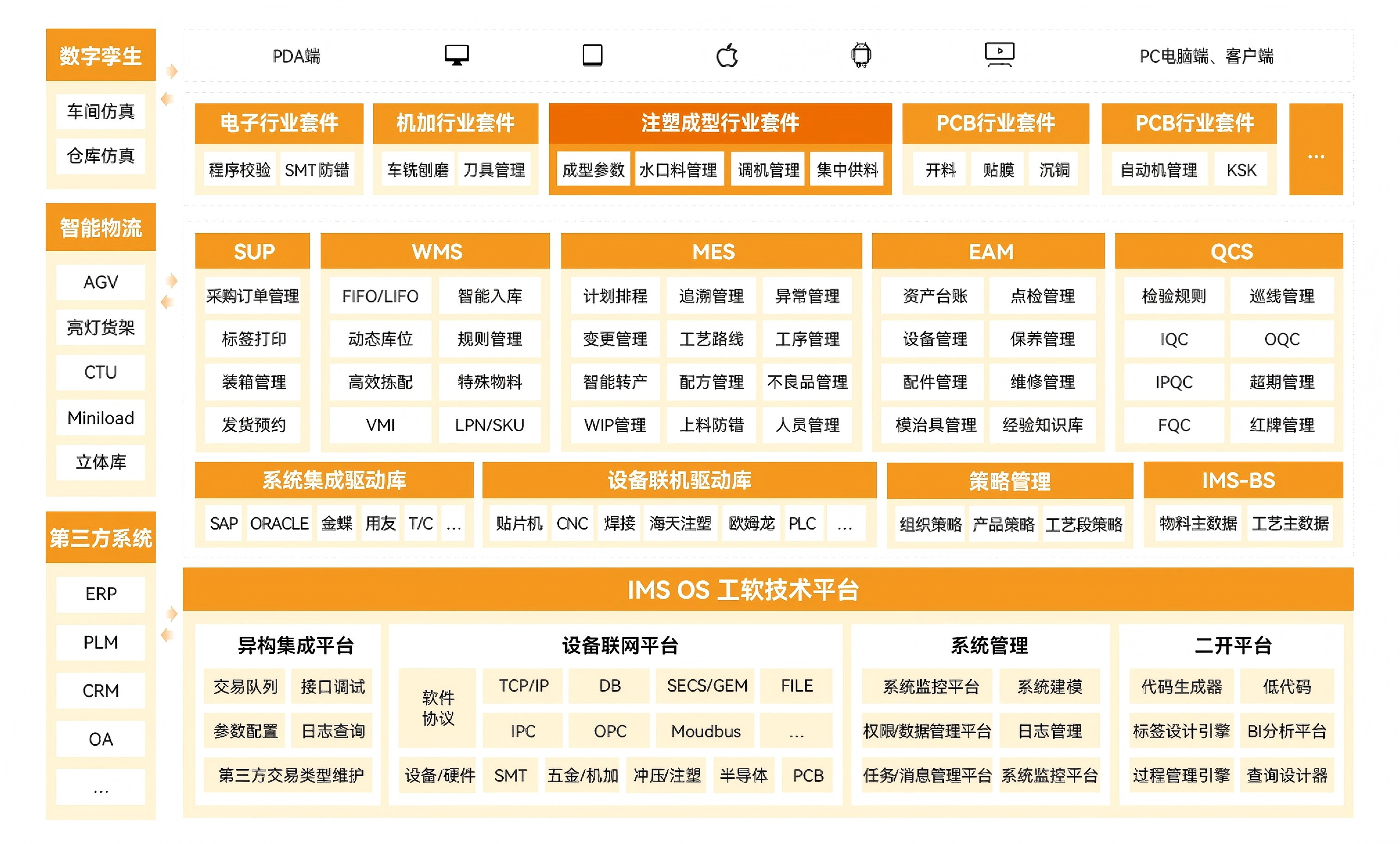 面对市场订单碎片化、客户交期紧缩、质量追溯要求严苛等现实压力,许多注塑企业意识到:数智化水平不足,正成为制约行业产能释放的核心瓶颈。盘古信息基于二十年行业积淀与自主研发的IMS OS工软技术底座,推出深度适配行业特性的注塑成型行业解决方案,助力企业构建注塑成型数智化工厂,实现生产效能与管理水平的双重飞跃。