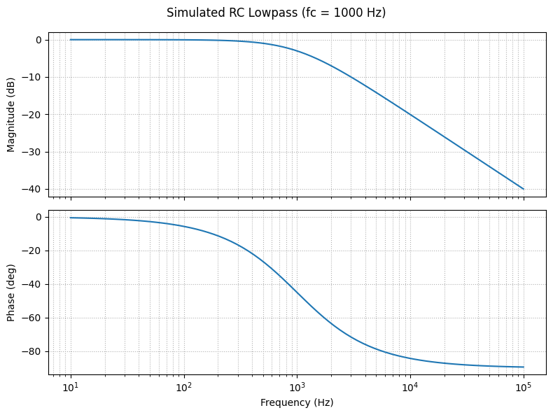 title=f"Simulated RC Lowpass (fc = {fc:.0f} Hz)")