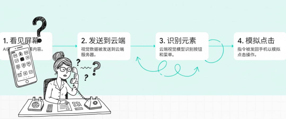 通过与手机厂商在操作系统层面深度合作,它获得了对屏幕界面元素的“视觉”和“触觉”。可以理解为:它不再是一个被关在App盒子里的工具,而是一个能看见屏幕、能模拟点击、能穿梭于不同应用之间的“数字人”。