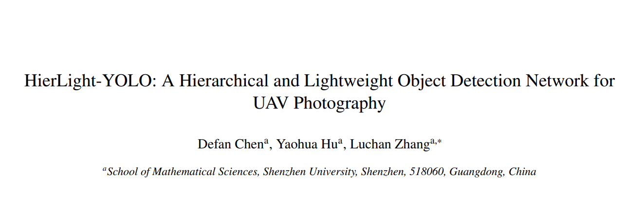 # HierLight-YOLO: 无人机摄影的层次化轻量目标检测网络