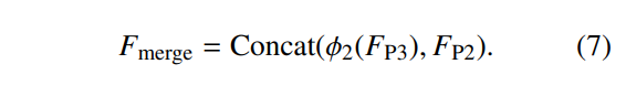 如公式 (7) 所示。此融合过程沿着通道维度拼接特征图,同时保留了空间信息和通道语义。该方法有效地合并了来自浅层 P2 层的空间细节特征(捕获边缘和纹理信息)与来自更深颈部层的语义上下文特征。