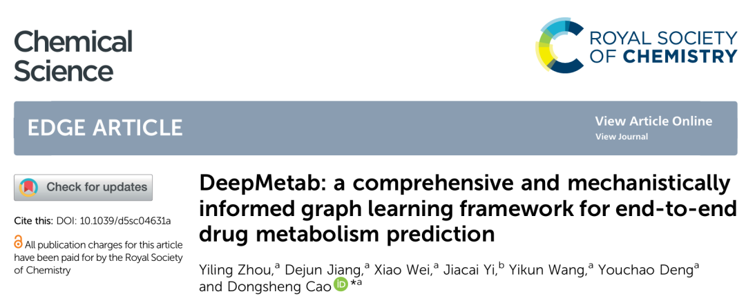 在药物研发领域,药物代谢预测始终是药代动力学研究的核心难题。一方面,酶促反应的机制复杂性让实验解析成本居高不下;另一方面,现有计算工具要么局限于单一预测任务,要么缺乏机制保真度与化学可解释性,难以满足临床前研究对代谢路径全面解析的需求。最近,中南大学药学院曹东升教授团队发表在《Chemical Science》上的一项研究提出了名为DeepMetab的深度图学习框架,首次实现了CYP450介导药物代谢的端到端预测,为解决这一痛点提供了突破性方案。