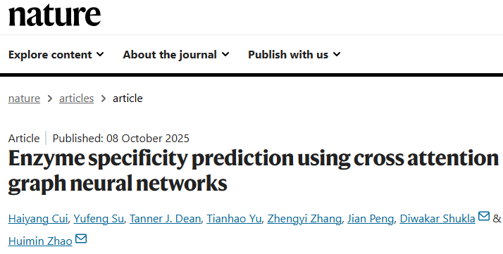 Cui, H., Su, Y., Dean, T.J. et al. Enzyme specificity prediction using cross attention graph neural networks. Nature (2025).