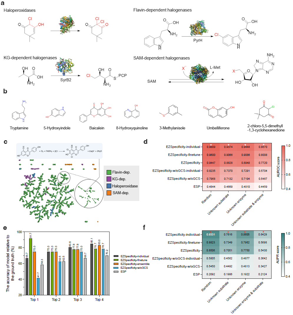 为了验证模型预测的真实性,研究人员选取 8 种黄素依赖卤化酶及 78 种底物进行体外实验。