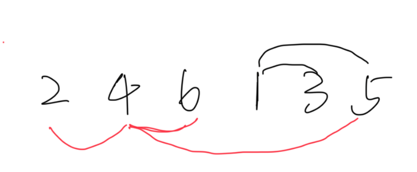 回顾块1:2,4,6 块2:1,3,5 由于4小于5,因此能用4,5相连将块连在一起